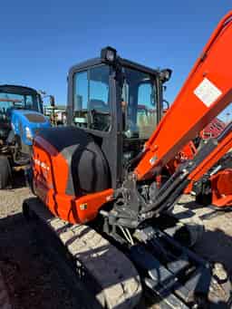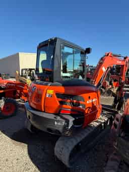 Compact Excavator w/ Cab (Heat & A/C), 4-Way Angle Blade, Mechanical Quick Coupler, Quick Attach Bucket, and Hydraulic Thumb.